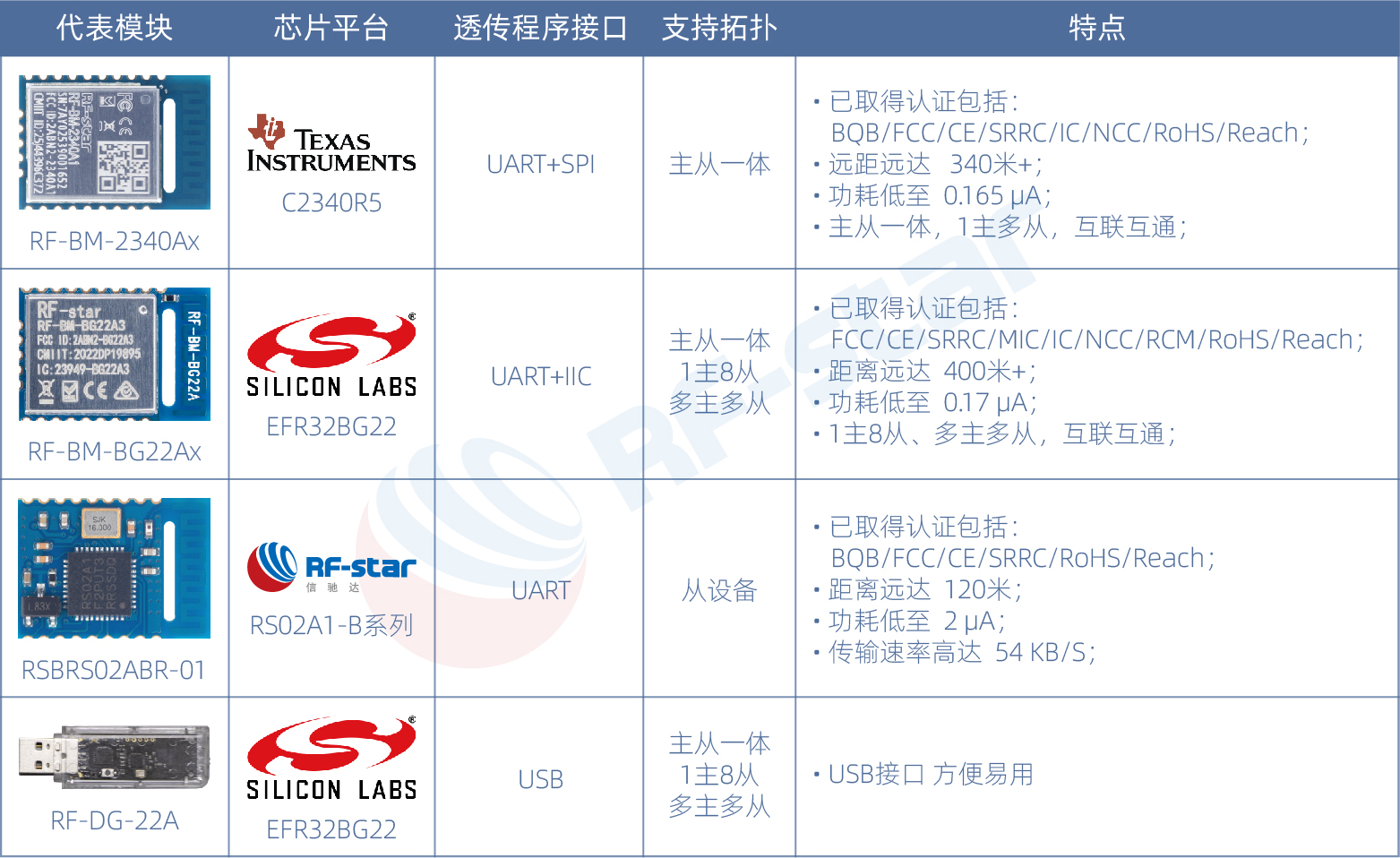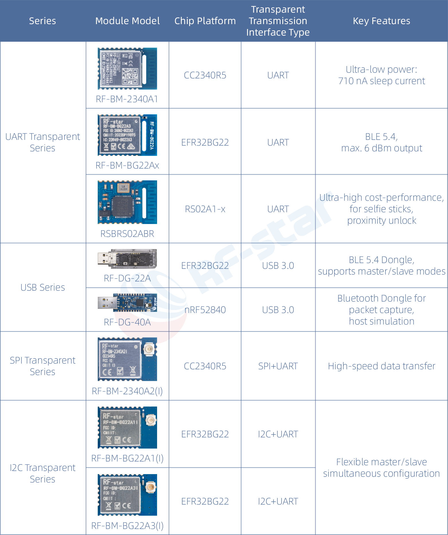 V. Bảng lựa chọn mô-đun Bluetooth trong suốt RF-star