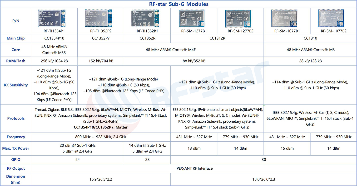 Một số mô-đun Sub-G của RF-Star hỗ trợ hoạt động đồng thời chế độ kép (2,4 GHz + Sub-G) và cũng có thể hỗ trợ nhiều giao thức truyền thông khác nhau như Wi-SUN và các giao thức độc quyền. Nền tảng phần cứng tương tự có thể thích ứng với các yêu cầu khác nhau của thị trường và ứng dụng, đồng thời dành nhiều không gian cho việc nâng cấp sản phẩm và mở rộng tính năng trong tương lai.